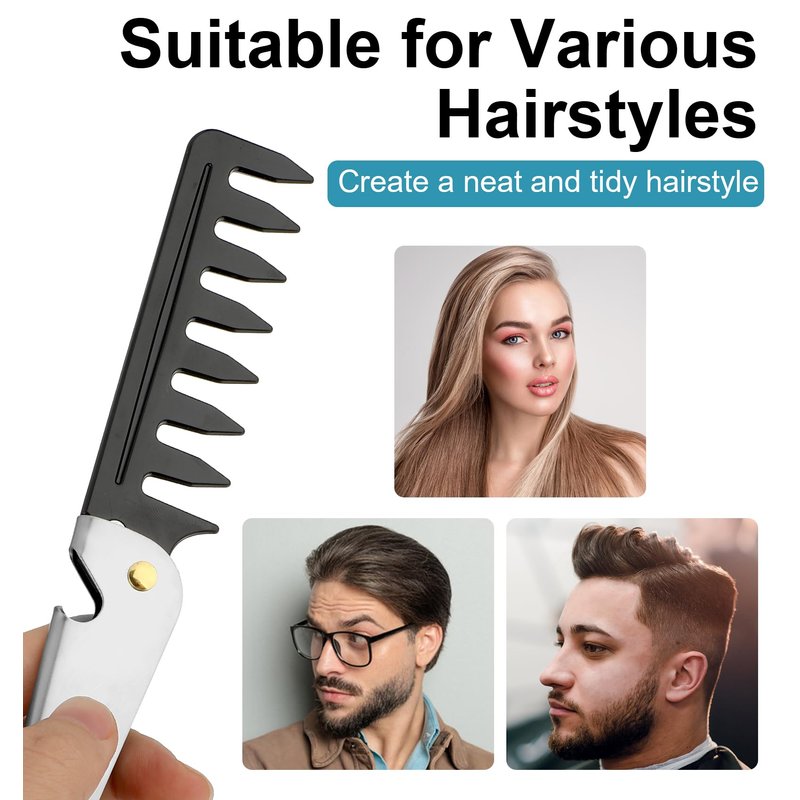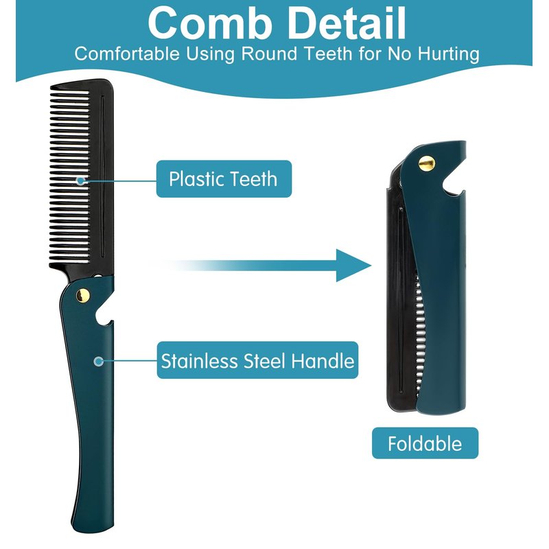 - Folding Comb for Men: Stainless Steel Folding Comb with elite workmanship which designed to prevent friction offering a static experience, great for detangling beards and hair;