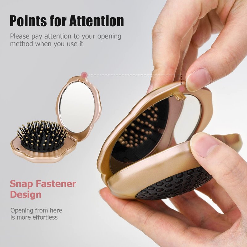 Folding Hair Brush, Mini Pocket Travel Mirror Brush Easy to Carry for Small Spaces Nylon Brush/Comb/HairBrush for Women Men's Any Hairstyles Hair and Beards Wet Dry Hair Restore Shine, Champagne