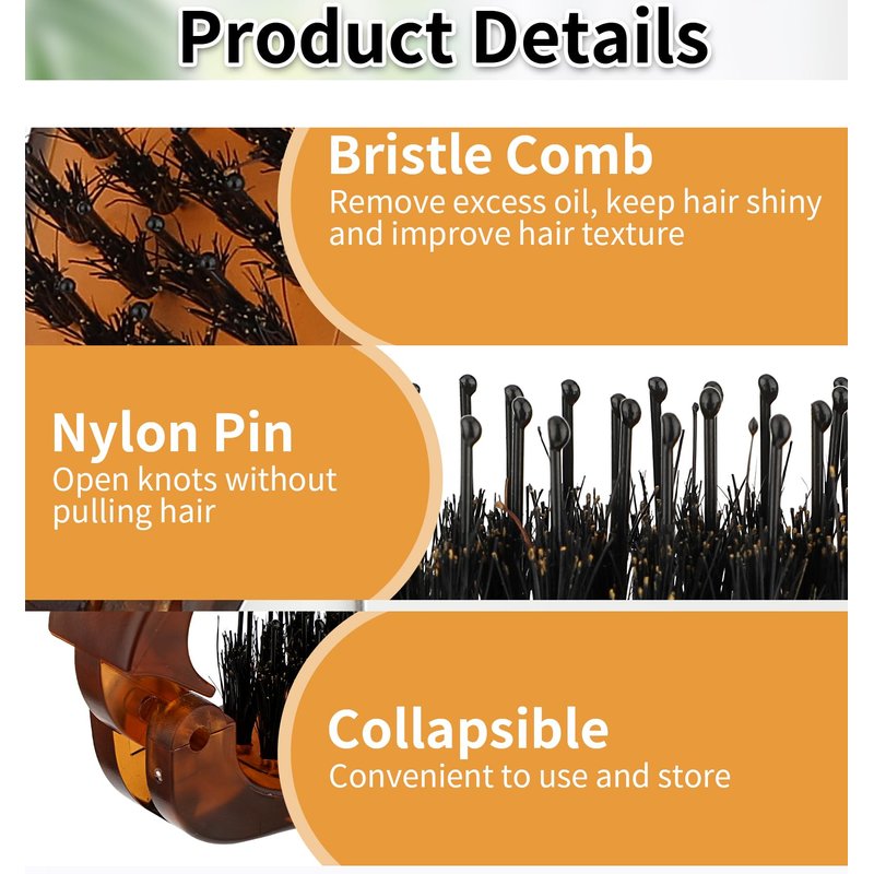 - Boar Bristles and Nylon: Travel brush is designed with a combination of natural boar bristles and nylon pins, which can distribute hair sebum from the scalp to the ends of your hair, promoting healthy and brighter;