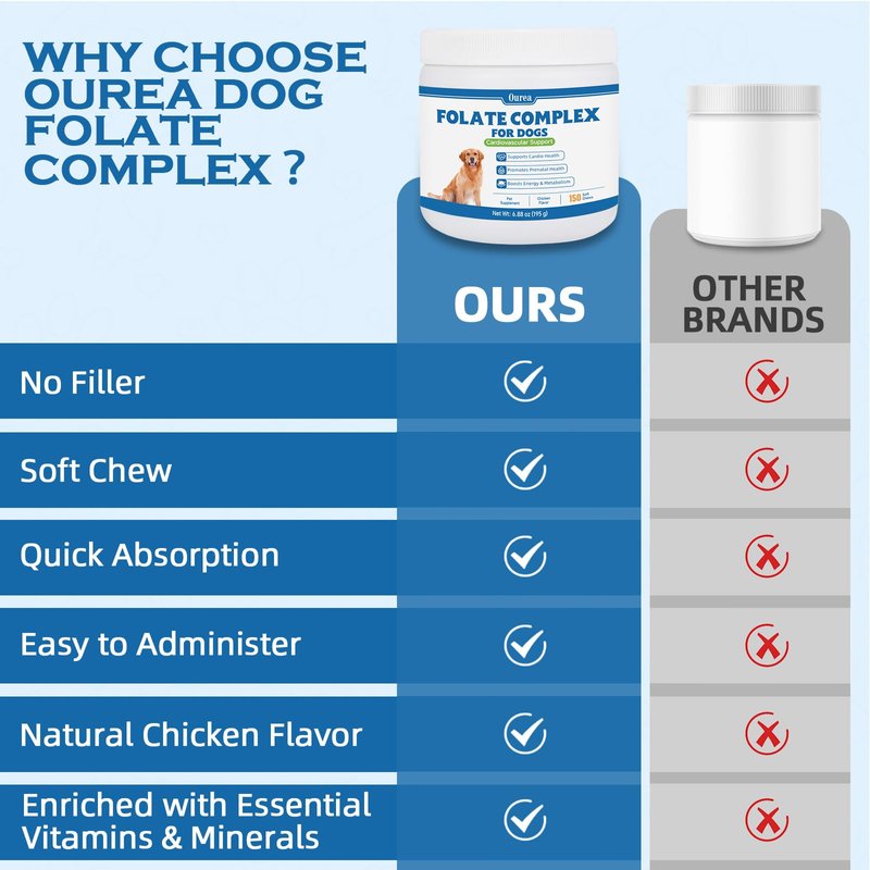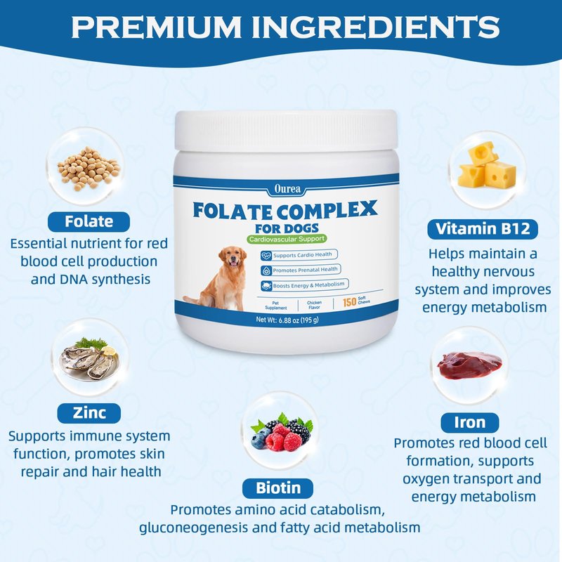 Folic Acid for Dogs - Dog Prenatal Vitamins with B12, Zinc, Biotin & Iron - Supports DNA Synthesis, Cardiovascular & Fetal Development - for Pregnant Dogs, Puppies -150 Soft Chews