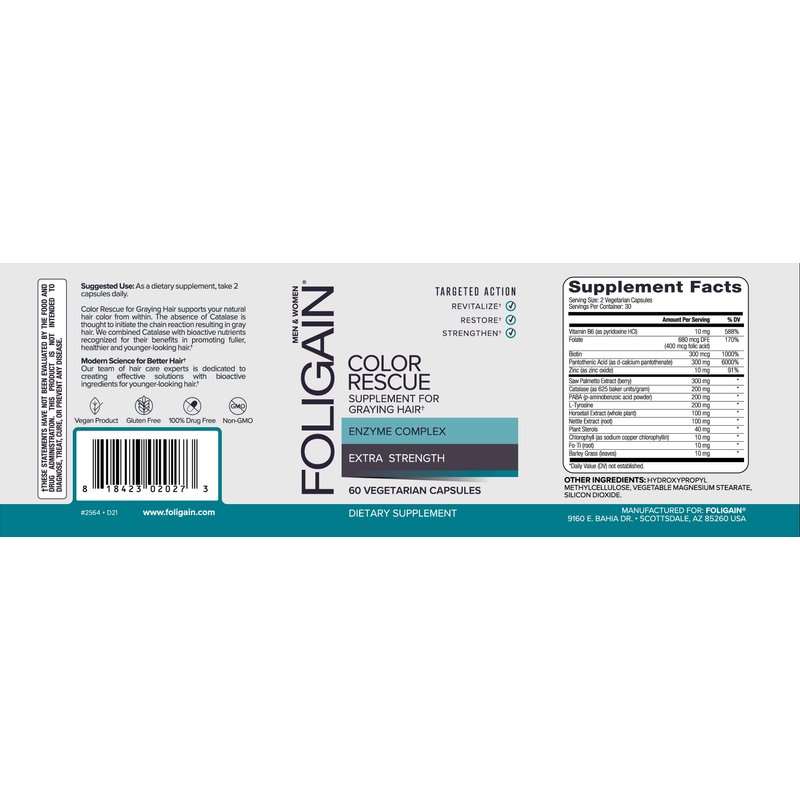 - Foligain Hair Supplement: Color Rescue for Graying Hair supports your natural hair color from within. We use a powerful catalase enzyme complex to help restore younger-looking hair.