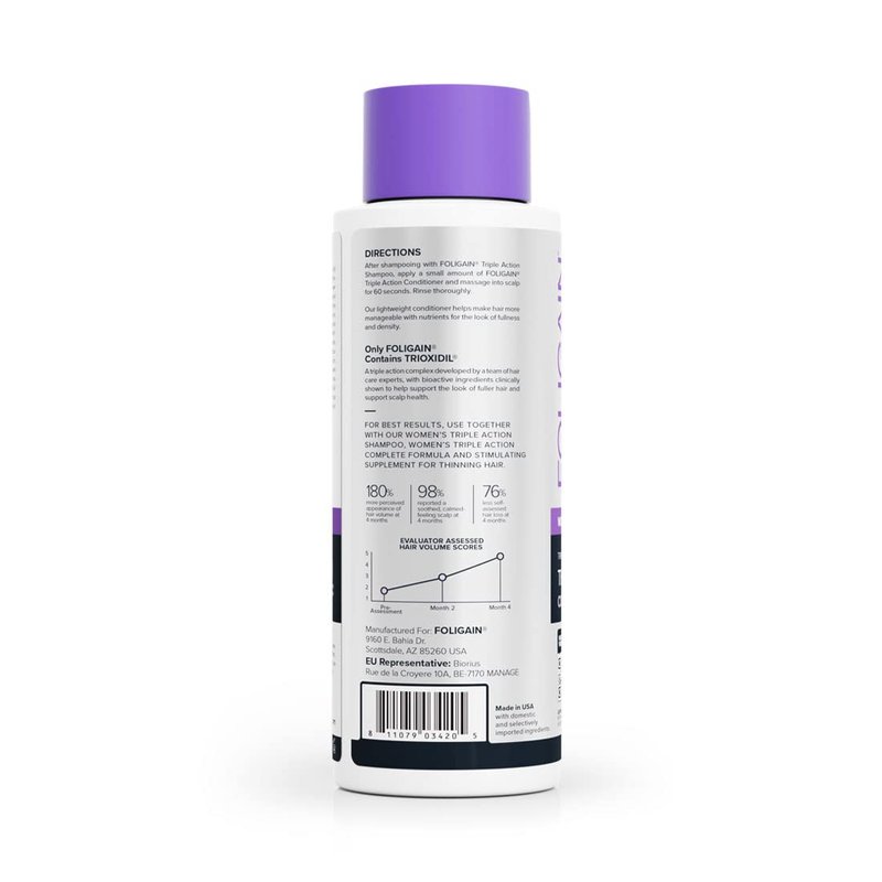 Foligain Triple Action Conditioner For Thinning Hair For Women with 2% Trioxidil | Hair Stimulating Conditioner | Women's Volumizing Conditioner (16oz) (15244)