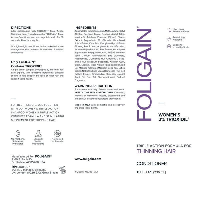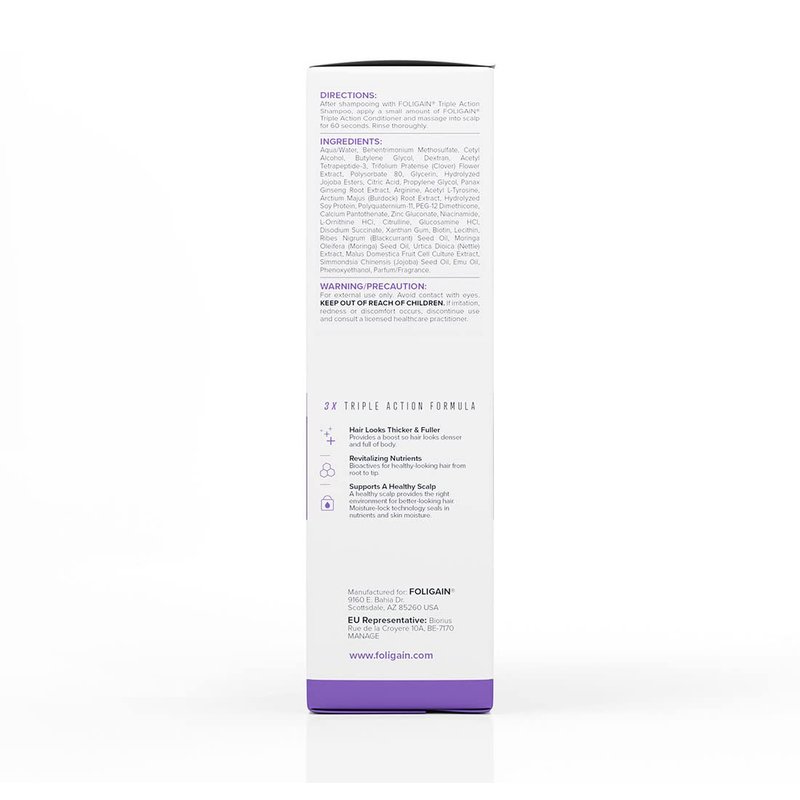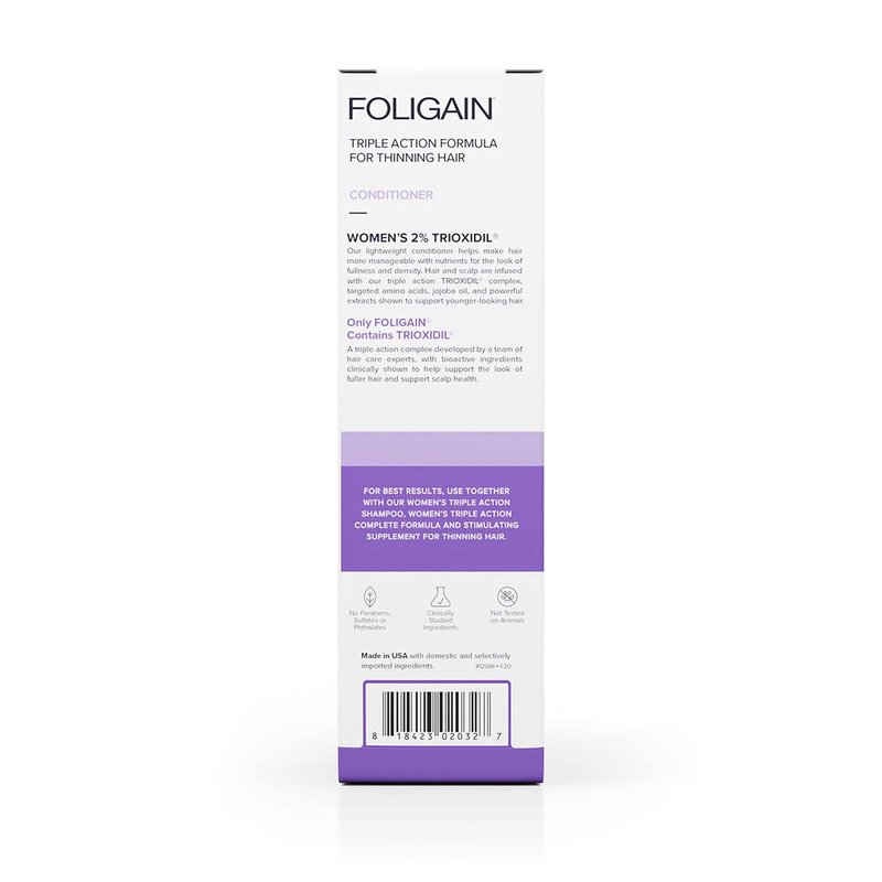 - Triple Action Conditioner: Only Foligain products contain Trioxidil, a triple action hair health complex with bioactive ingredients, botanicals & more. Our conditioner with biotin uses advanced delivery, moisture-lock technology & targeted nutrients.