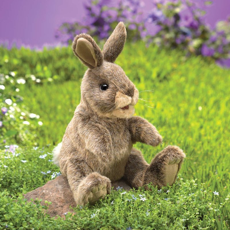 - Easily animate the antics of this engaging small Cottontail rabbit hand puppet