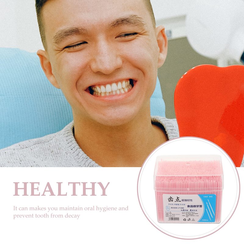FOMIYES 1000pcs Disposable Toothpicks, Double- Head Plastic Toothpicks, Interdental Toothpick Floss Oral Care Floss for Men