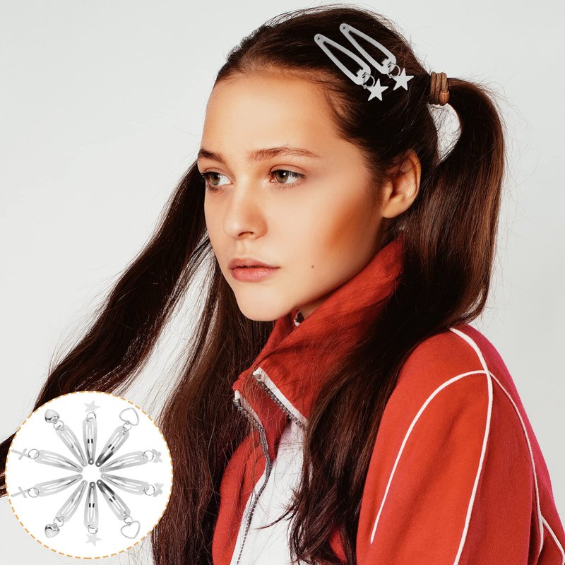 FOMIYES 10pcs Metal Snap Hair Clips, Punk Hairpins, Silver Heart Crosses Pendant Hair Barrettes, Thick Thin Hair Accessories Hip Hop Hair for Women Girls