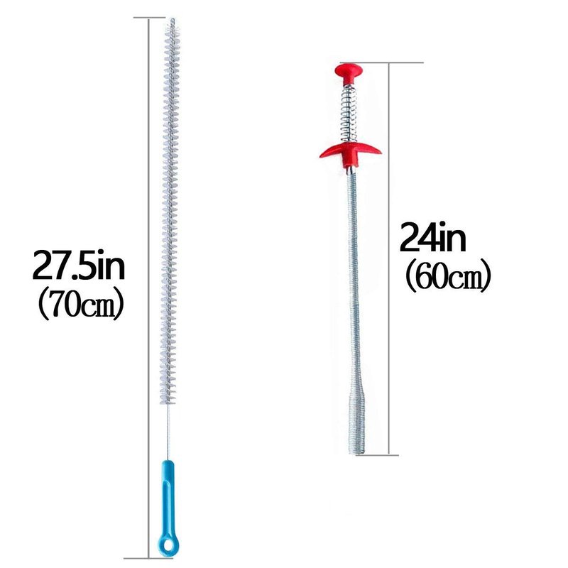 - Great work: 3 pack * 19.6 inch orange plastic drainage clean, 1 pack * 24 inch stainless steel solid line in a water snake catcher, 1 pac *27.5 inch Cleaning Brush, 1 pack * 39.3 inch metal sewer Cleaning tools