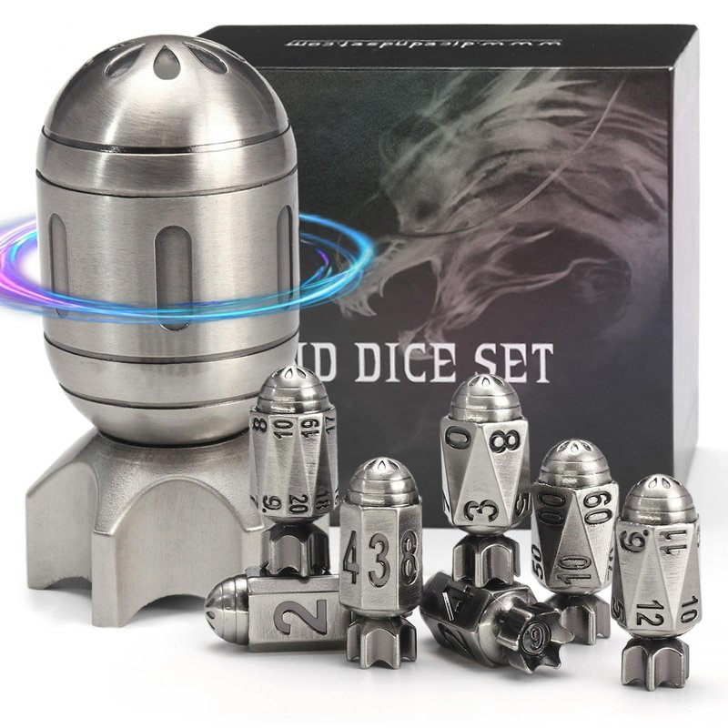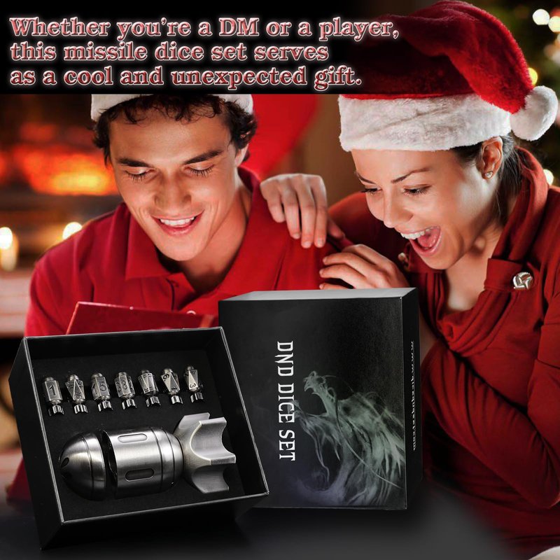 - IDEAL D&D GIFT: 7 bullet polyhedral dice and spinning missile container are packed in a cardboard case. Whether it's a birthday, Christmas, Halloween or special occasion, this dnd dice set will be an impressive gift for D&D enthusiasts and dice collector