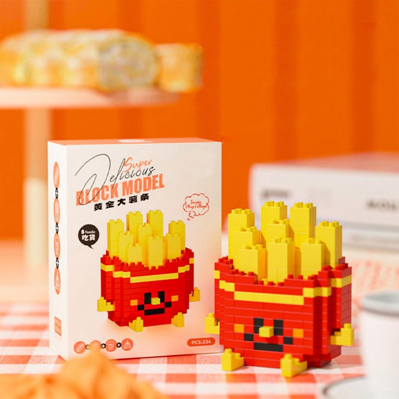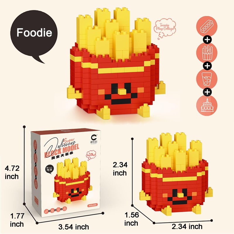 Food Building Blocks Set Toys Mini Building Blocks Fast Food Building Bricks Toy Micro Block Building Set Gift for Kids and Adults-234 PCS(French Fries)