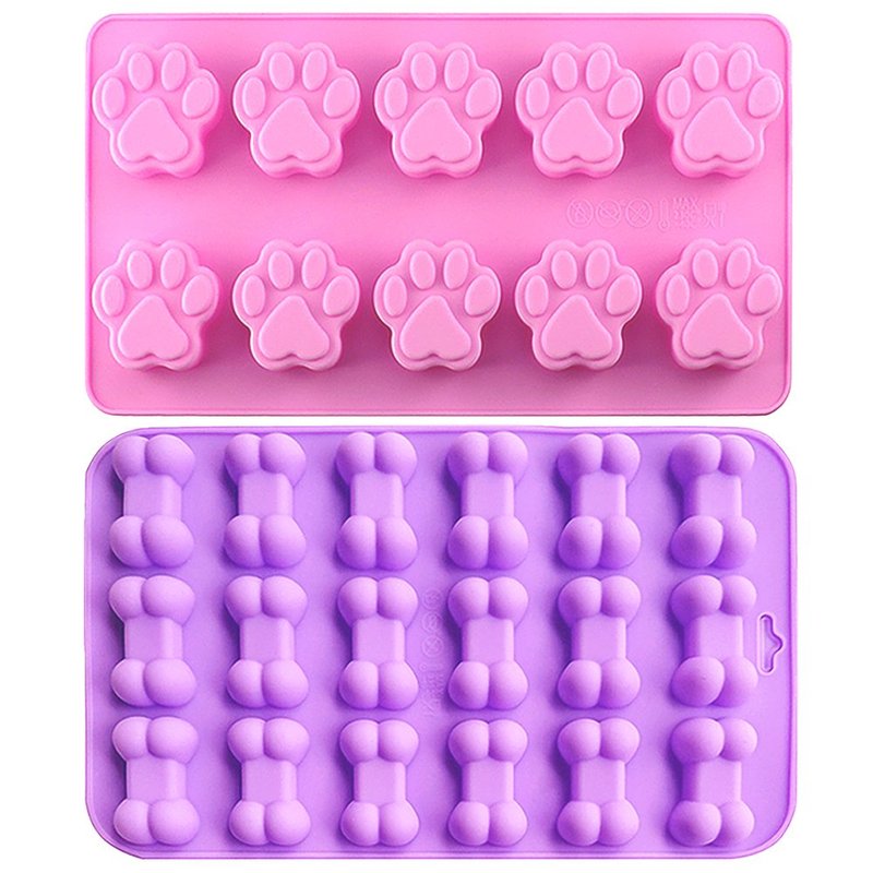 There are 10 paws on each paw mold, and 18 bones on each bone mold.