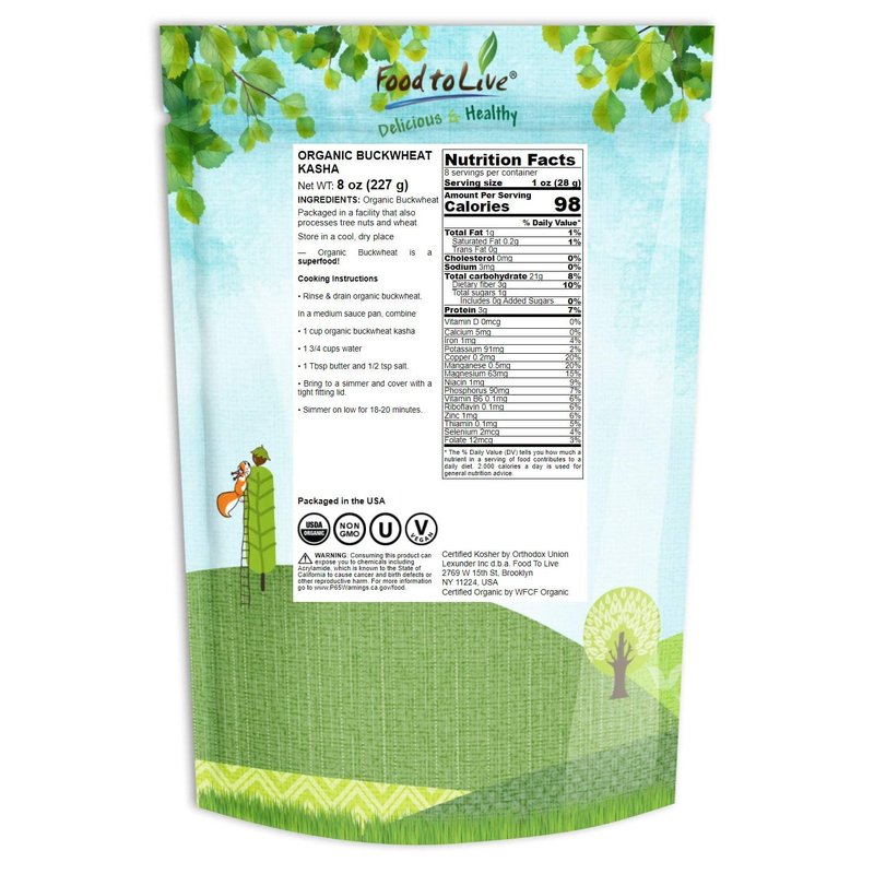 - ✔️ GLUTEN-FREE & NON-GMO: Food To Live Organic Buckwheat Kasha is a certified organic product with no gluten.
