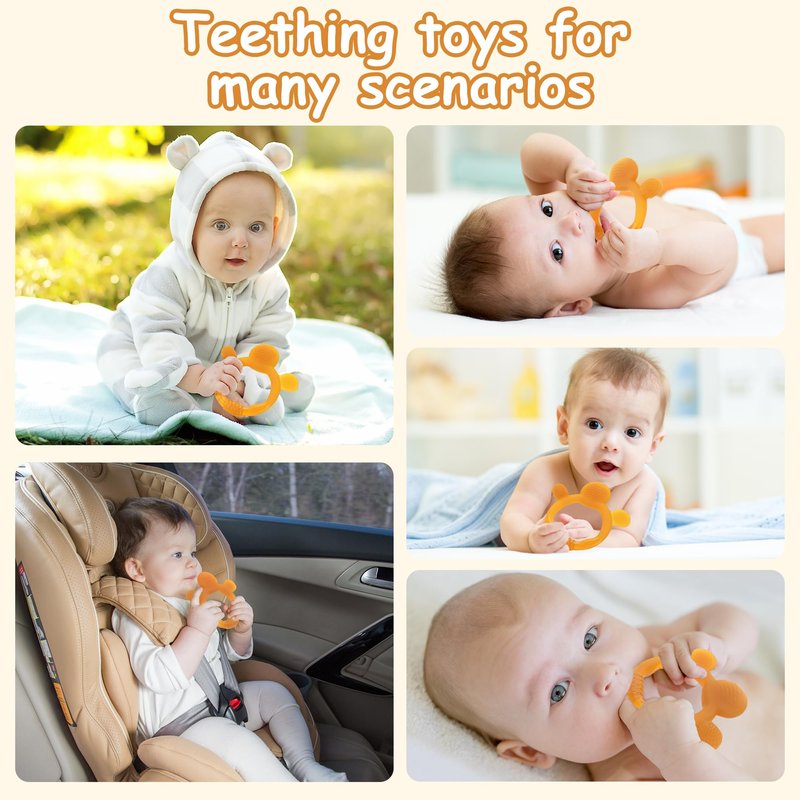 - 【Relieve Sore Gums & Develop Good Oral Hygiene Habits】: while our baby go through weaning and teething phase, the Baby Teether Toys have different protruding textures and bumpy massage particles, which can massage the baby’s gums, and reduce fussiness & discomfort. Baby teething toys can prevent babies from biting or sucking their fingers. It helps protect children's oral hygiene.