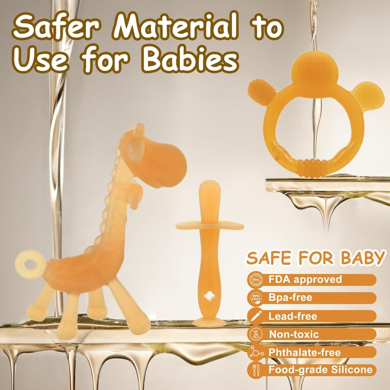 Quality & Safety Assurance: Our baby teething toys set are made of food-grade silicone, BPA Free, Latex Free, Lead Free and Phthalates Free. Easy to clean and safe in dishwasher, boiling water, microwave. We are committed to focusing on the healthy development and happiness of your baby.