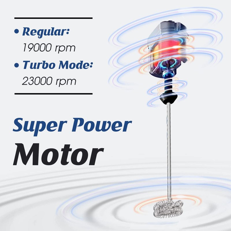 - Turbo Mode: Press “ON” to power on and stay at a low speed level, press again to change to powerful turbo mode for high speed frothing, blending, mixing and beating.
