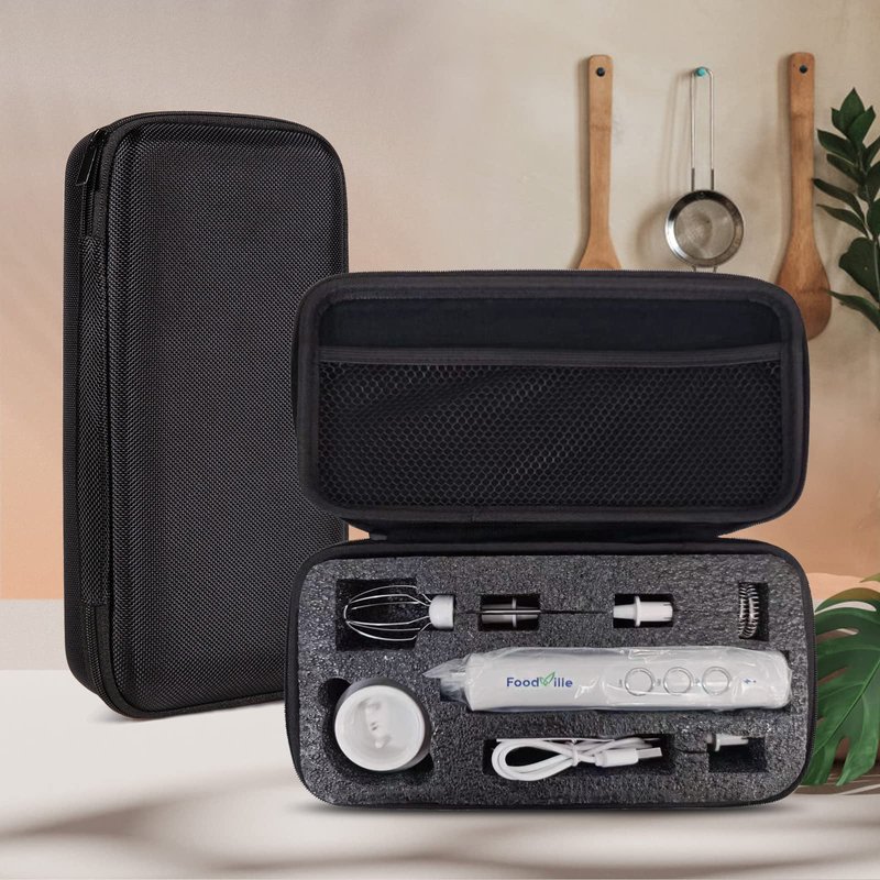- Travel Case: We add a travel case into the package so you can take MF09 milk frother with you in your travel, vacation, or business trip. It can also be taken as a storage case in your kitchen.