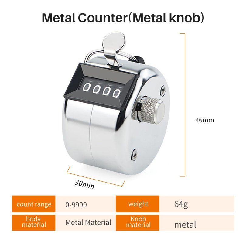 The handheld click counter is made of premium stainless steel to ensure reliability and durability. hand counter clicker With a clear viewing frame and solid buttons, the quality is stable and reliable.hand tally counter small and lightweight with a metal finger ring for easy portability. manual counter clicker Mechanical construction, no need for batteries. pitch counter clicker 4-Digit Number Clicker Counter For Coaching clicker, Knitting counter, People counter, Lap counter, Fishing counter, Golf counter and Row
