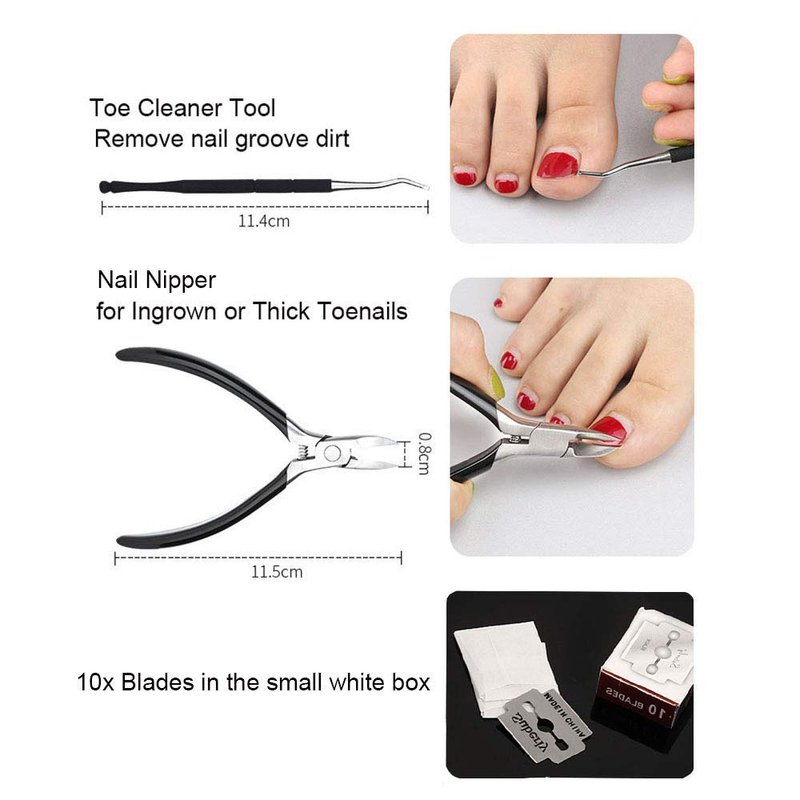 Foot Care Pedicure Callus Shaver Hard Skin Remover 10 Blades Ingrown Toenail Tools Kit, Ingrown Toenail Removal Correction Clippers, Professional Pedicure Tools (Black)…