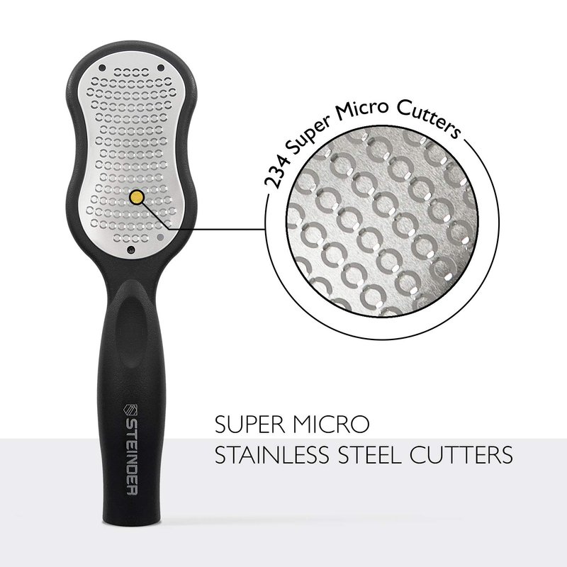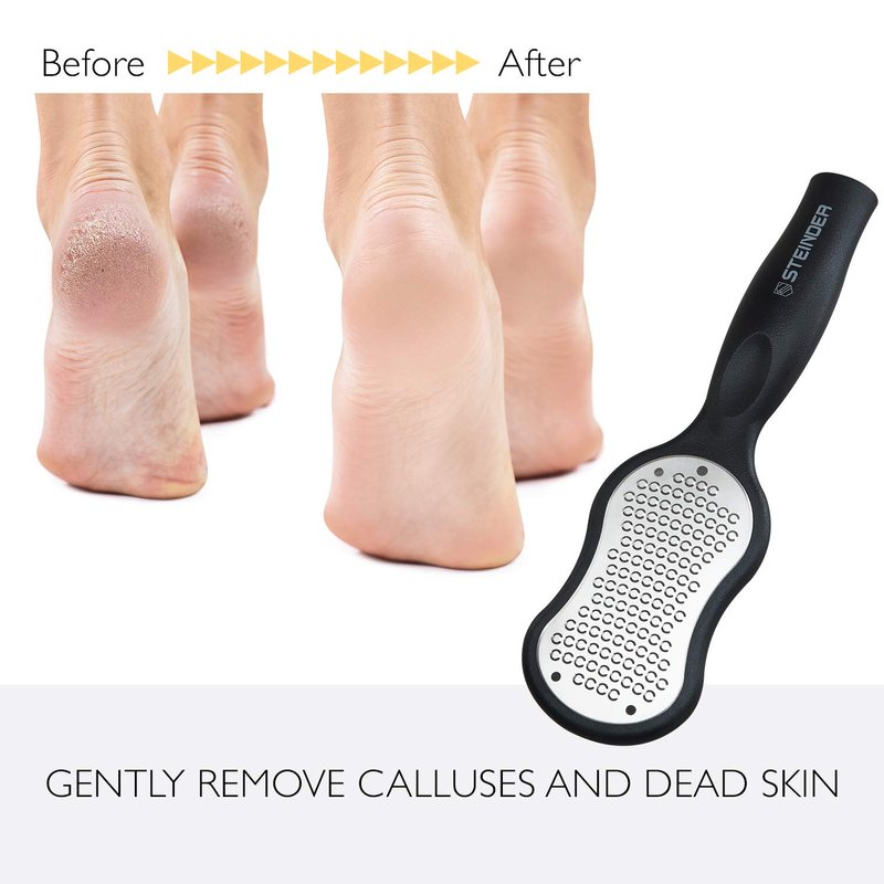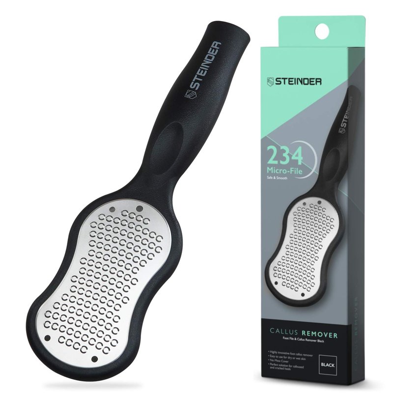 - GENTLY REMOVE CALLUSES AND DEAD SKIN: The Steinder Foot File Callus Remover is well-known by salon professionals foot scrubbers as a highly innovative FOOT PEDICURE RASP and pedicure tools. HEAVY DUTY: Can easily treat the toughest of cracked skin or stubborn calluses if used as a part of your foot care routine. It is very good candidate for father's day gift and mother's day gift.