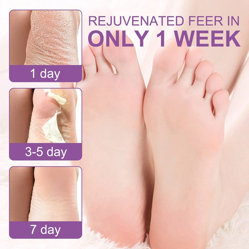 - EFFICIENT FEET PEELING MASK : For Best Results, soak your feet daily for 10-20 minutes after the application. Expect the peeling to start at Day 2-4 and the whole process may last about 7 days.