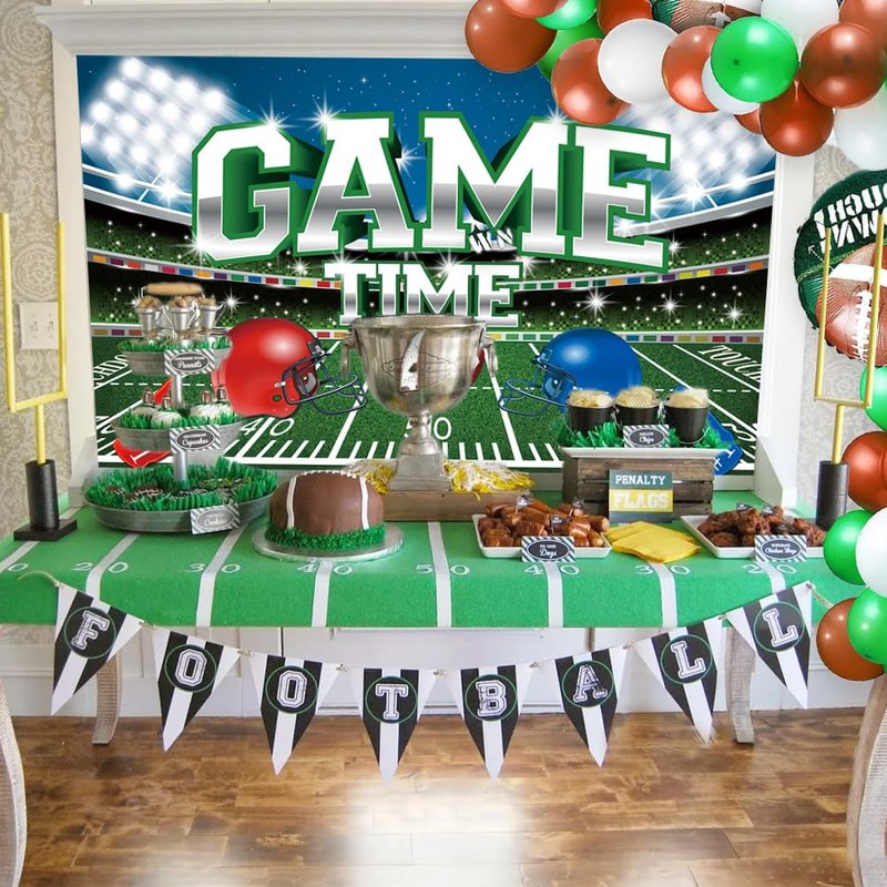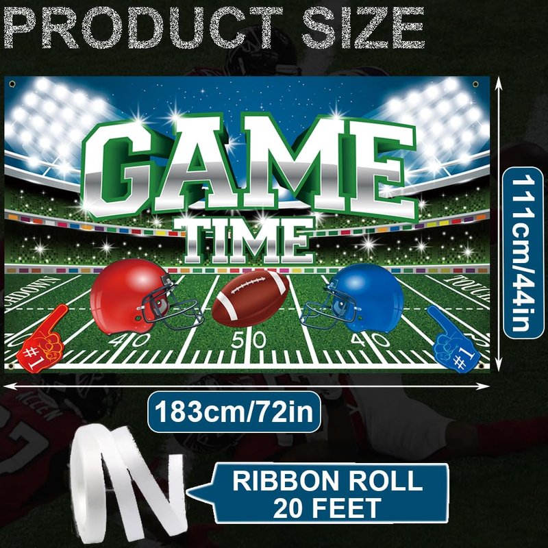 - Football Backdrop - The football field backdrop is printed with football field, football,yard numbers pattern, Dazzling words"GAME TIME" and football player helmet, brightly colored and eye-catching, bring a lively atmosphere to football spectator, leave all people a unforgettable memories.