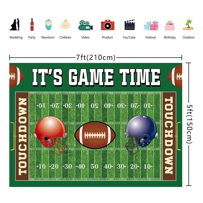 - FUN & ENTERTAINING: Football Backdrop,It's Game Time Party Backdground,Football Birthday Banner Touchdown Football Party Decorations Boy Birthday Party Backdrop, instantly liven up your party setting. Let your family have a happy time!