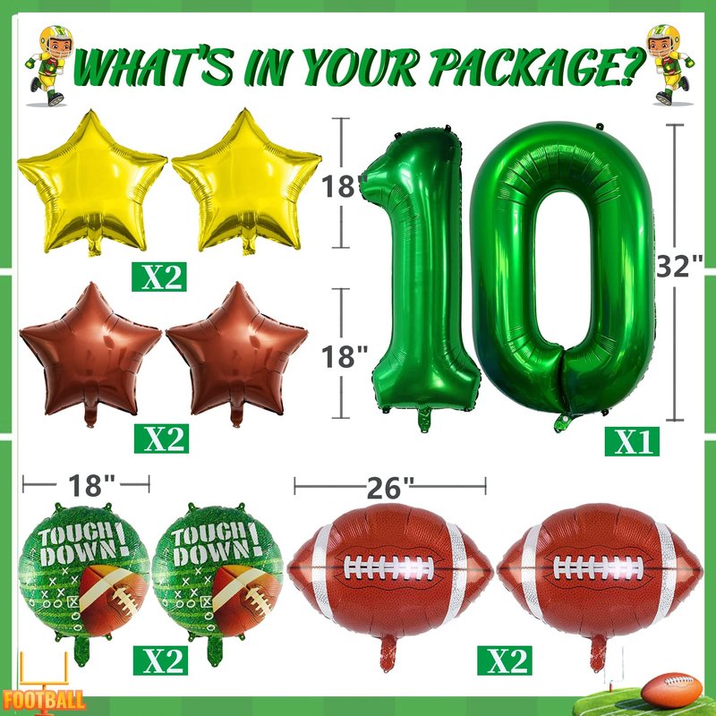 - 💕【Package included】You will get 2pcs 18" Football Field Balloons, 2pcs Football Foil Balloons, 4pcs Star Balloons, and 1pc digit number balloon.