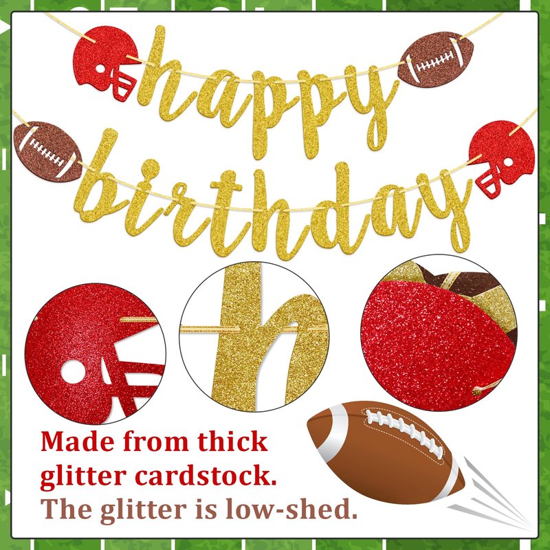 Football Happy Birthday Banner, Sports Happy Birthday Banner, Football Birthday Banner, Touchdown Banner, Sports Banner, Football Birthday Party Decorations, Gold Glitter