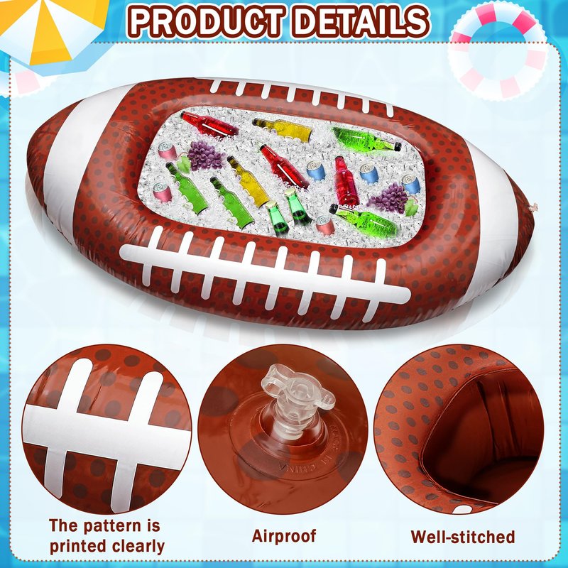- Lightweight and portable: You will receive a 51*27 inch (130*70cm) inflatable football cooler that is easy to inflate for parties and can be folded when not in use. It also features a drainage valve for easy water drainage.