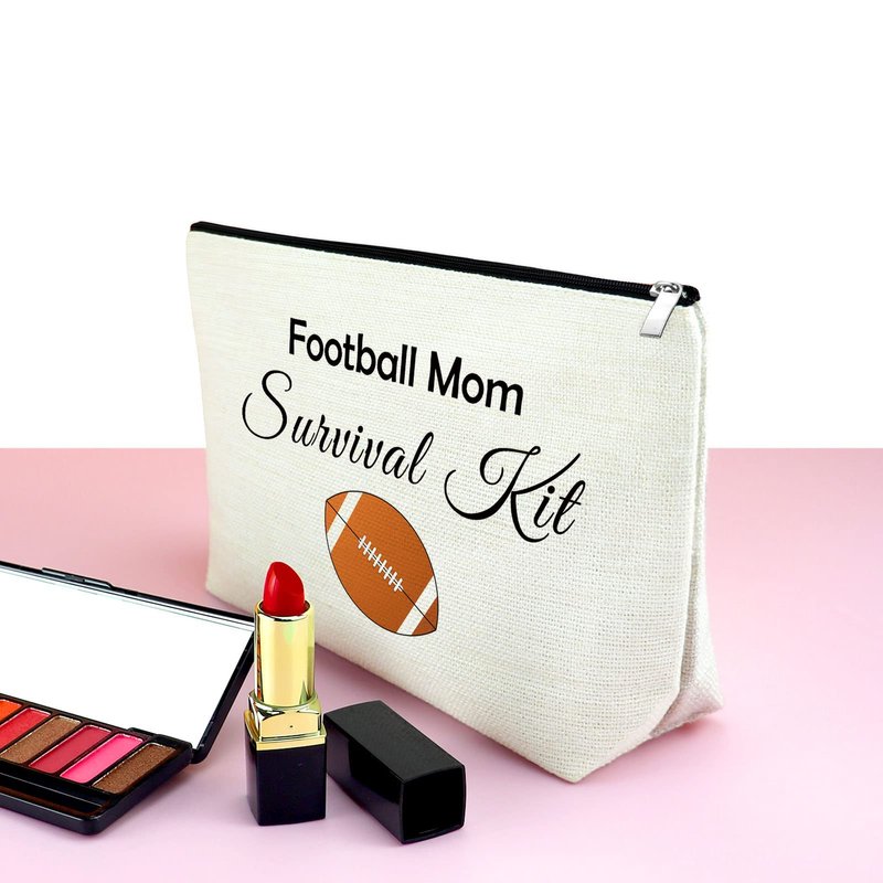 - Football Mom Gift:Looking for a gift for a football mom?This football lover themed cosmetic bag is engraved with the words "Football Mom".It's the perfect gift for yourself or a footballer's mother to show the love of football.