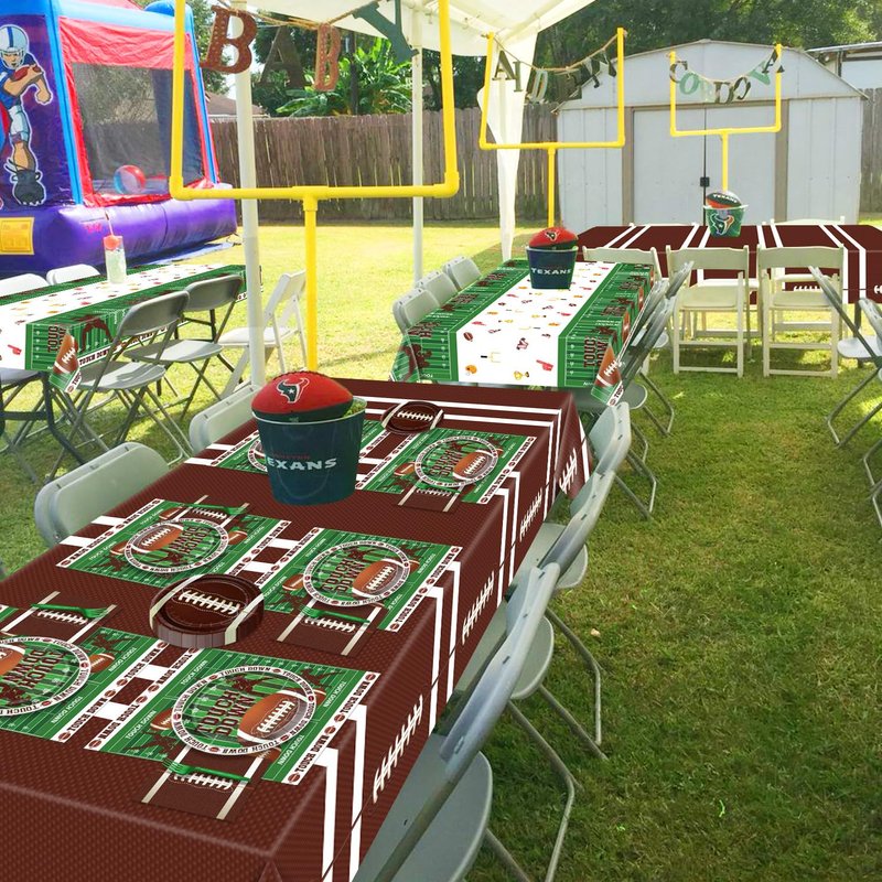- High Quality: Made of thick and lightweight paper, our football plates and napkins are safe and sturdy. The football tablecloth is made of waterproof, sturdy, and stain-resistant PE.