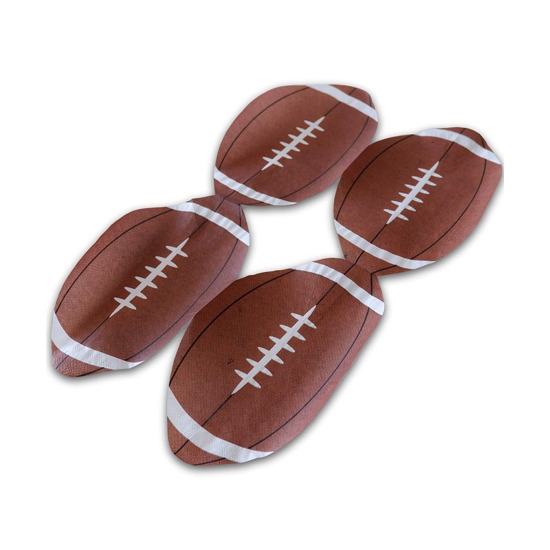 VALUE PACK - Each pack of Football Party Napkins includes 100 pieces of American football shaped disposable paper napkins. FOOTBALL SHAPE - Each napkin is folded two times evenly to create a 4-layer napkin, with football design printed on the front and on the back side. UNIQUE DESIGN - Design creatively and specifically for Football Sunday or Super Bowl, as well as all sports theme events including birthday party, football Sunday, and more! Perfect addition to sports theme party decoration. MADE WITH FOOD GRADE MATERIAL - Be unique and different on your napkin selection for your football party- also perfect for any occasions as long as you are a football fan. SIZE - The napkins are folded into football of 5" x 7.5", and can be unfolded to bigger pieces of 2-ply napkins.