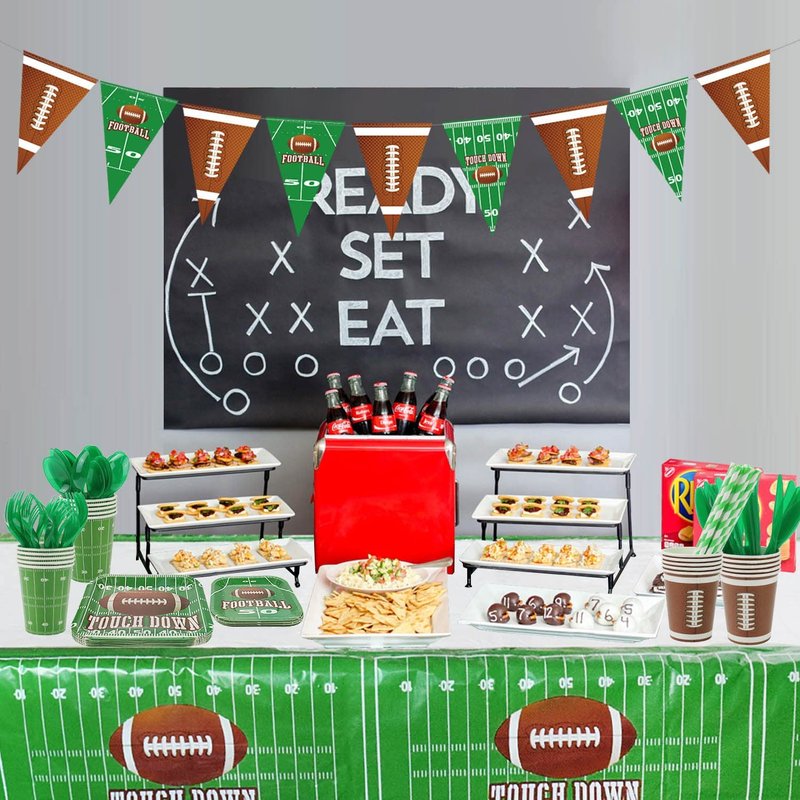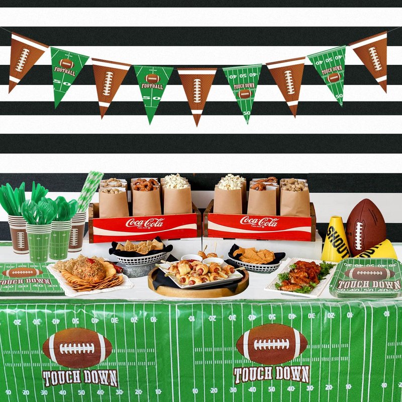 Football Party Supplies Football Touchdown Game Day Accessory Including Plates, Cups, Napkins, Tableware, Tablecloth, Banner, Serves 20