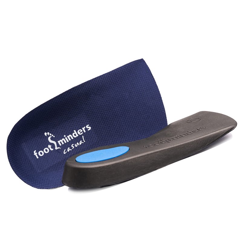 Footminders Casual is a 3/4-length podiatrist-designed orthotic insole for men's and women's low-heeled dress shoes without laces . This biomechanical arch support helps realign body posture, relieving foot pain, heel pain and lower back pain. It is ideal for people who work on their feet or walk for long periods.