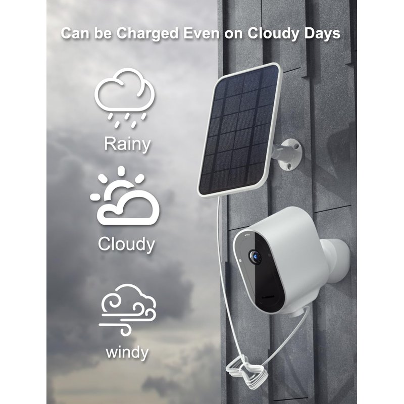 - 🌈️[Easy Installation] The adjustable wall-mounted solar charging panel allows you to easily adjust it even if it is installed at a higher location outdoors. It is equipped with a 13-foot solar panel charging cable, which is more convenient during use. Warm reminder: Before using the solar charging panel, the camera's battery needs to be fully charged.