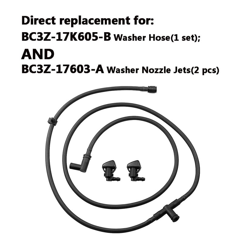 - PACKAGE INCLUDED -- 1x Windshield Washer Fluid Rubber Hose Kit (BC3Z-17K605-B) and 2x Windshield Washer Nozzle (BC3Z-17603-A)
