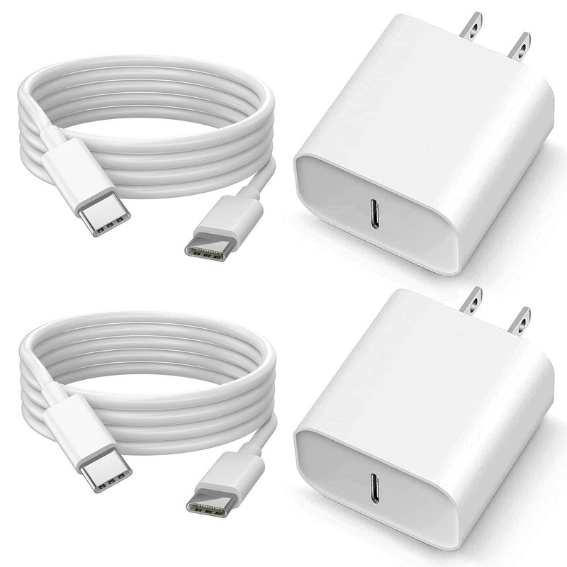 - 【What You Get】2 Pack 25W PD 3.0 USB C wall charger and 2 Pack 6FT 3A Type C to Type C cable.