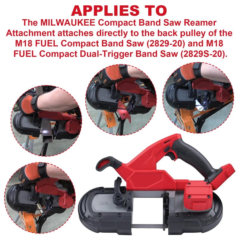 - The MILWAUKEE Compact Band Saw Reamer Attachment attaches directly to the back pulley of the M18 FUEL Compact Band Saw (2829-20) and M18 FUEL Compact Dual-Trigger Band Saw (2829S-20).