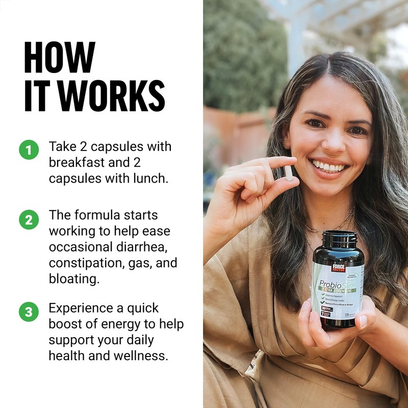 - REDUCE BLOAT AND BULGE: reduce occasional gas, bloating, constipation, and diarrhea with the powerful probiotic strains in Probio slim extra Strength, so you can feel more confident throughout the day.