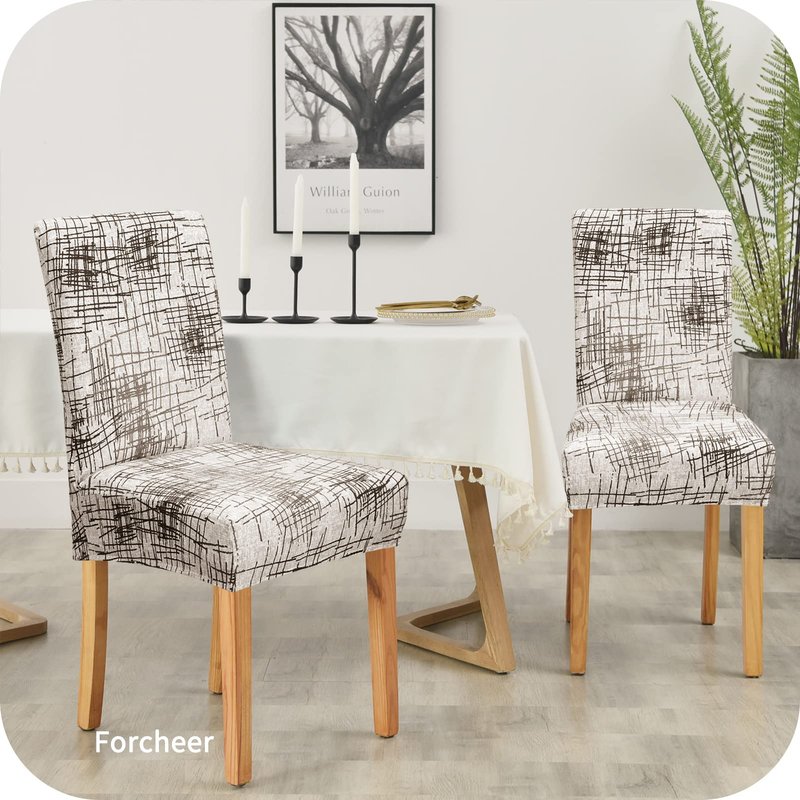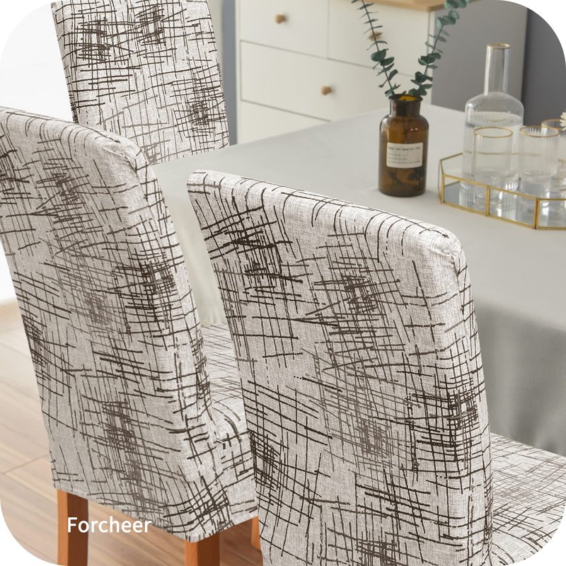 FORCHEER Pattern Stretch Chair Covers for Dining Room Set of 4,Printed Stretchable Dining Chair Slipcover Washable Removable for Kitchen,Hotel,Restaurant,Ceremony Universal Size(4PCS,Linen Stripe)