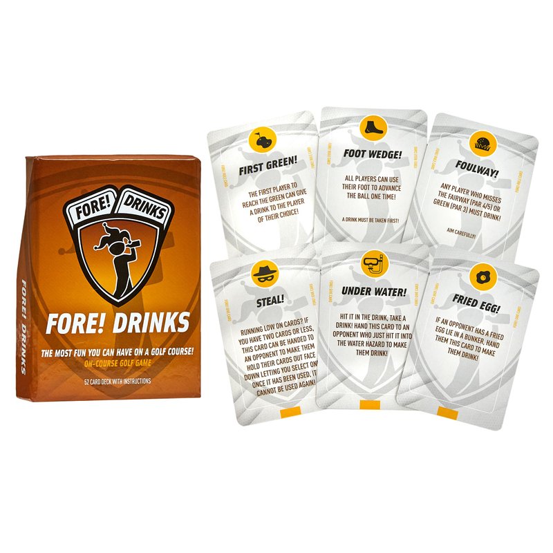 - Includes Fore! Cards, Fore! Drinks & Fore! Money