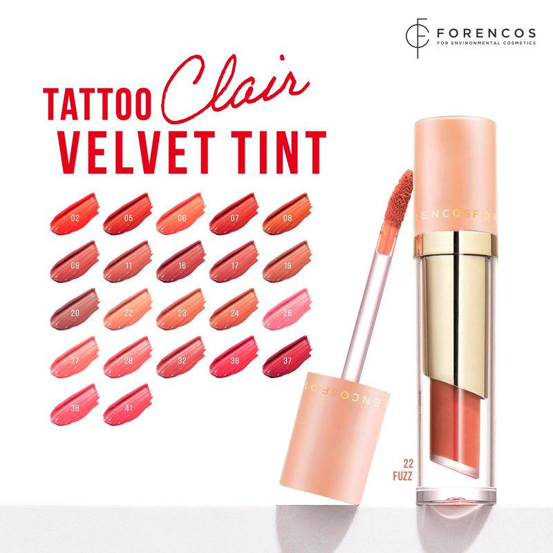 Experience the ultimate lip color with Forencos Tattoo Clair Velvet Lip Stain/Tint. Our innovative formula ensures that your lips stay vibrant and beautiful all day long. The velvet lip tint not only provides a weightless and non-sticky finish but also offers exceptional longevity, making it perfect for any occasion. Whether you're heading to a special event or just going about your daily routine, our lip stain will keep your lips looking flawless and fresh.The long-lasting wear of our velvet lip stain means you can enjoy beautifully tinted lips without the need for frequent touch-ups. Applying Forencos Tattoo Clair Velvet Lip Stain is easy. Follow our simple application tips to achieve a stunning tattoo effect on your lips. First, ensure your lips are clean and dry. Apply a thin layer of the lip stain, starting from the center of your lips and working your way outwards. Allow the tint to set for a few minutes and blof off the excess with a tissue as many as you want . Then enjoy the incredible, long-lasting color.Make your day perfect with Forencos Tattoo Velvet lip and experience the difference of a lip color that combines vibrant pigmentation with unparalleled staying power.