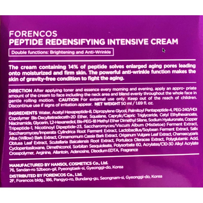 FORENCOS Peptide Redensifying Intensive Face Night Cream, 1.69 fl oz