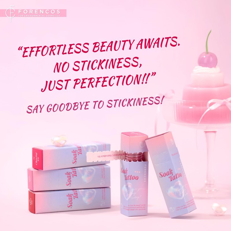 Forencos Soak Lip Stain/Tint (Water Gel) – a vegan, cruelty-free, and gluten-free lip product that aligns with your ethical values while delivering vibrant, long-lasting color. Free from animal-derived ingredients, parabens, and gluten, this lip stain is perfect for those committed to a vegan lifestyle but looking for a long-lasting lip product. The water gel-based formula effortlessly seeps into your lips, ensuring a vivid stain that lasts all day without fading or smudging. The color you see is the color you get, with consistent, intense pigmentation that stays true from the first application to the last. Designed for convenience, this pocket-sized tint is easy to carry, making it your go-to for any occasion – whether it's a day at work, a night out, or a weekend getaway. Waterproof and sweat-proof, it guarantees worry-free wear, allowing you to enjoy bold, eye-catching color without the need for constant touch-ups. Experience a weightless, non-sticky finish that feels smooth and comfortable!