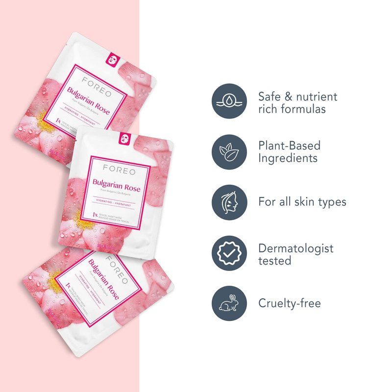 - FRESH AS A ROSE IN BLOOM - Gentle and light, the Bulgarian Rose dual-mode sheet face provides deep supple hydration as Bulgaria-sourced natural rose water invigorates, amplified by nourishing precious jojoba seed oil.