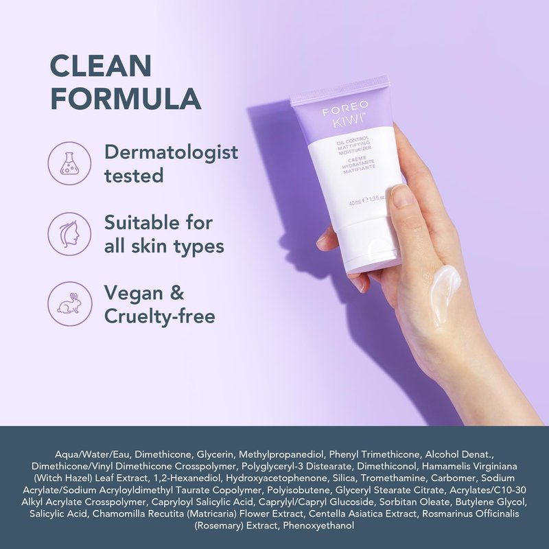 FOREO KIWI Oil Control Mattifying Moisturizer- Aftercare for Microdermabrasion Machine & Blackhead Extractor Pore Vacuum Skincare Tools- Oily skin with Acne- Dermatologist tested- Vegan, 1.35 Oz