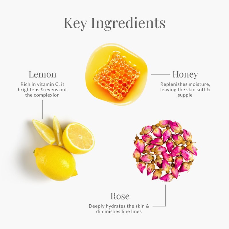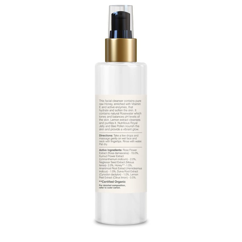 Details: This Delicate Facial Cleanser is infused with pure raw Honey that hydrates and softens the skin. The Natural Rosewater present in this cleanser tones the skin while the balancing lemon oil cleanses and purifies it. It nourishes the skin while also providing it with a natural glow.