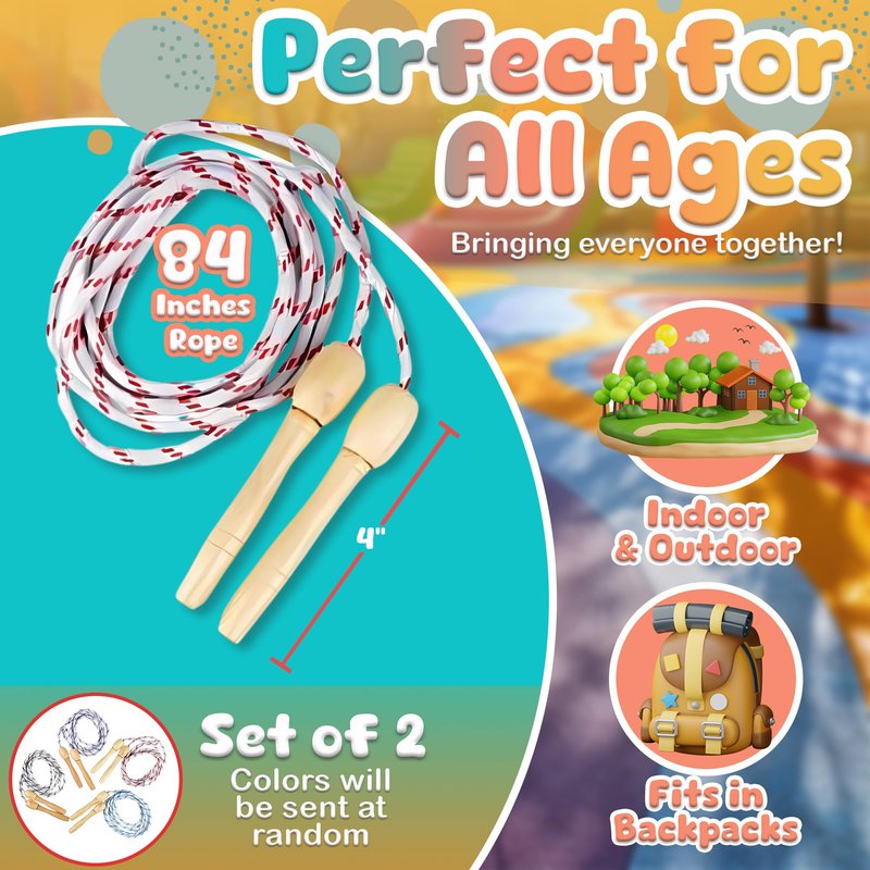 A set of 2 jump ropes designed just for kids. Durable and light weight handles comfortably fit in little hands. The high-quality nylon will last and last (it won't wear out, even on rough concrete and outdoor surfaces). Besides the quality properties, this jumping rope is a lot of fun for kids and a good way to encourage kids to get outside and begin to develop healthy habits at a young age!