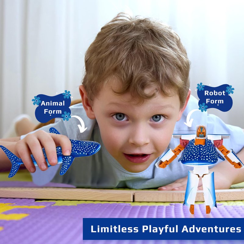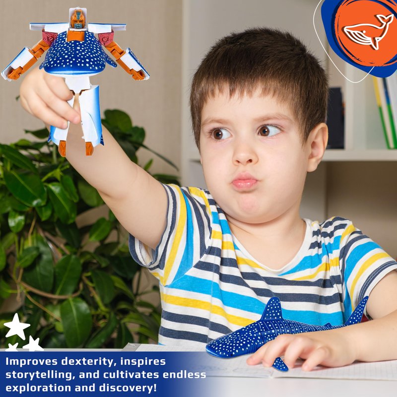 We know how hard it can be to find toys that are both exciting for your little one to play with, but also thought-provoking for them as well. That’s why with our whale shark transforming animal toy, they’ll be able to spend hours crafting imaginative play sessions as they use their hands to carefully alter and transform this animal toy into a fun and exciting robot toy.