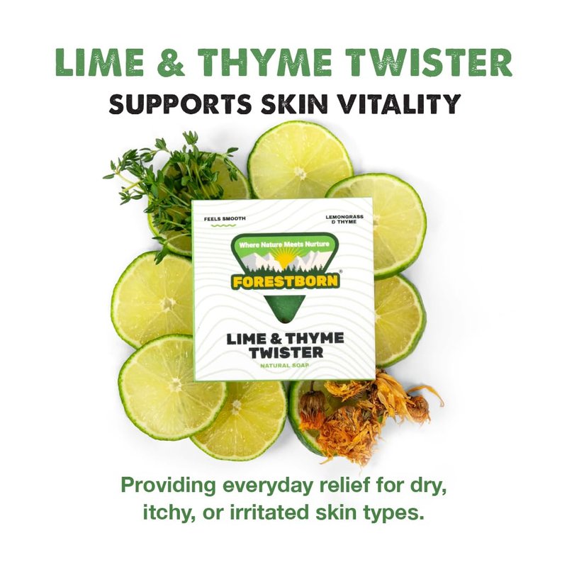 FORESTBORN All Natural, Premium Quality Bar Soap with Smooth Texture, 5 oz, Lime & Thyme Twister - Nurturing Nature and Nourishing Lives