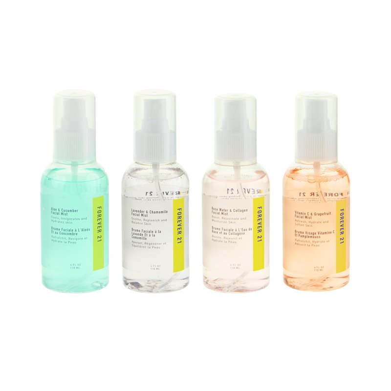 Forever 21 Facial Mist Collection, 4 Mists, 4 FL OZ each, Cooling Cucumber, Boosting Rose Water, Soothing Lavender, Hydrating Vitamin C